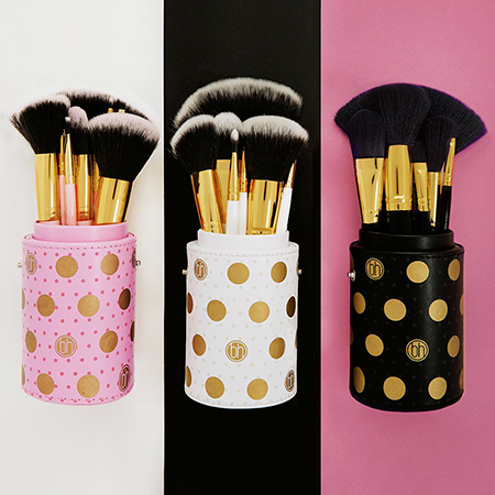 ครบทุกการใช้งาน ประกอบด้วยแปรงตา 6 ชิ้น หน้า 4 ชิ้น และแปรงปาก 1 ชิ้น มาในกระบอกเก็บแปรงสีขาวโพลก้าดอทสีทองพกพาสะดวกสวยเด่นทั้งแปรงและกระบอกเก็บ